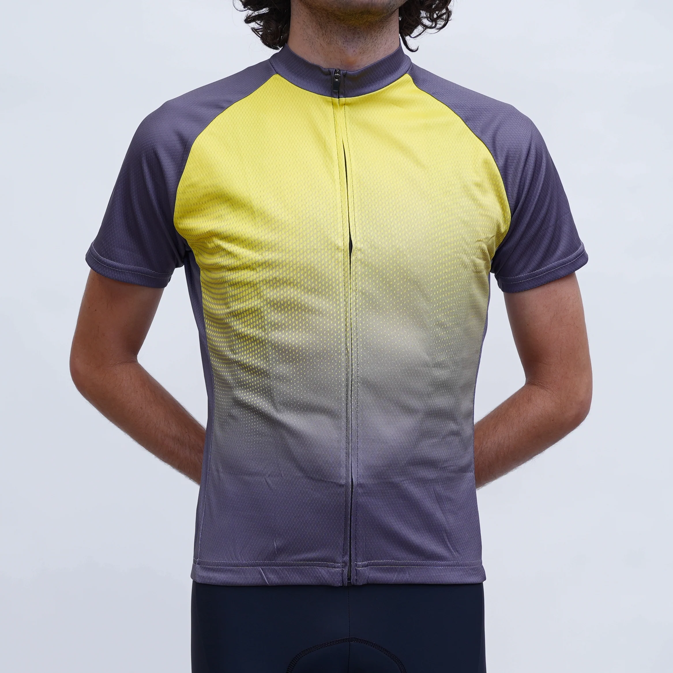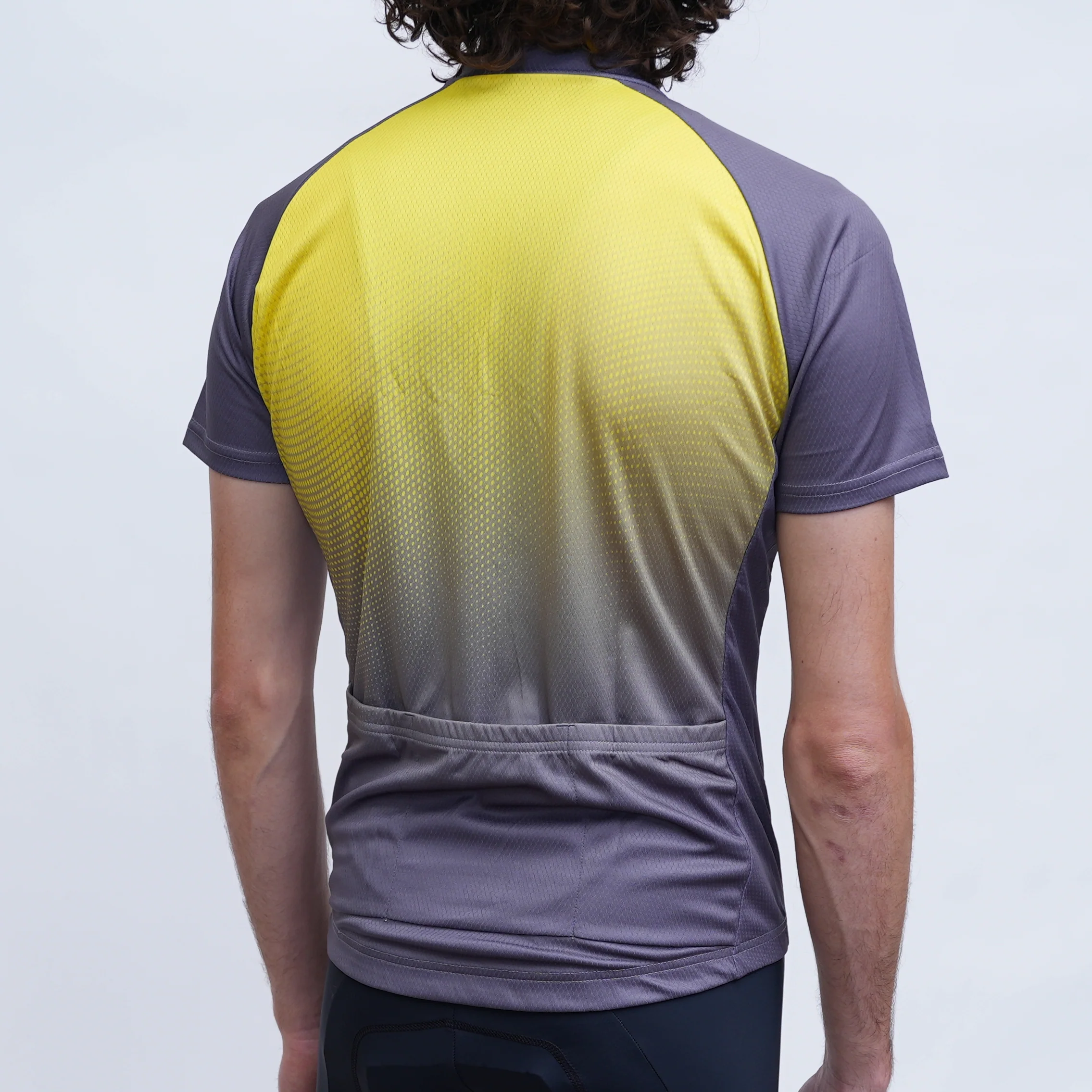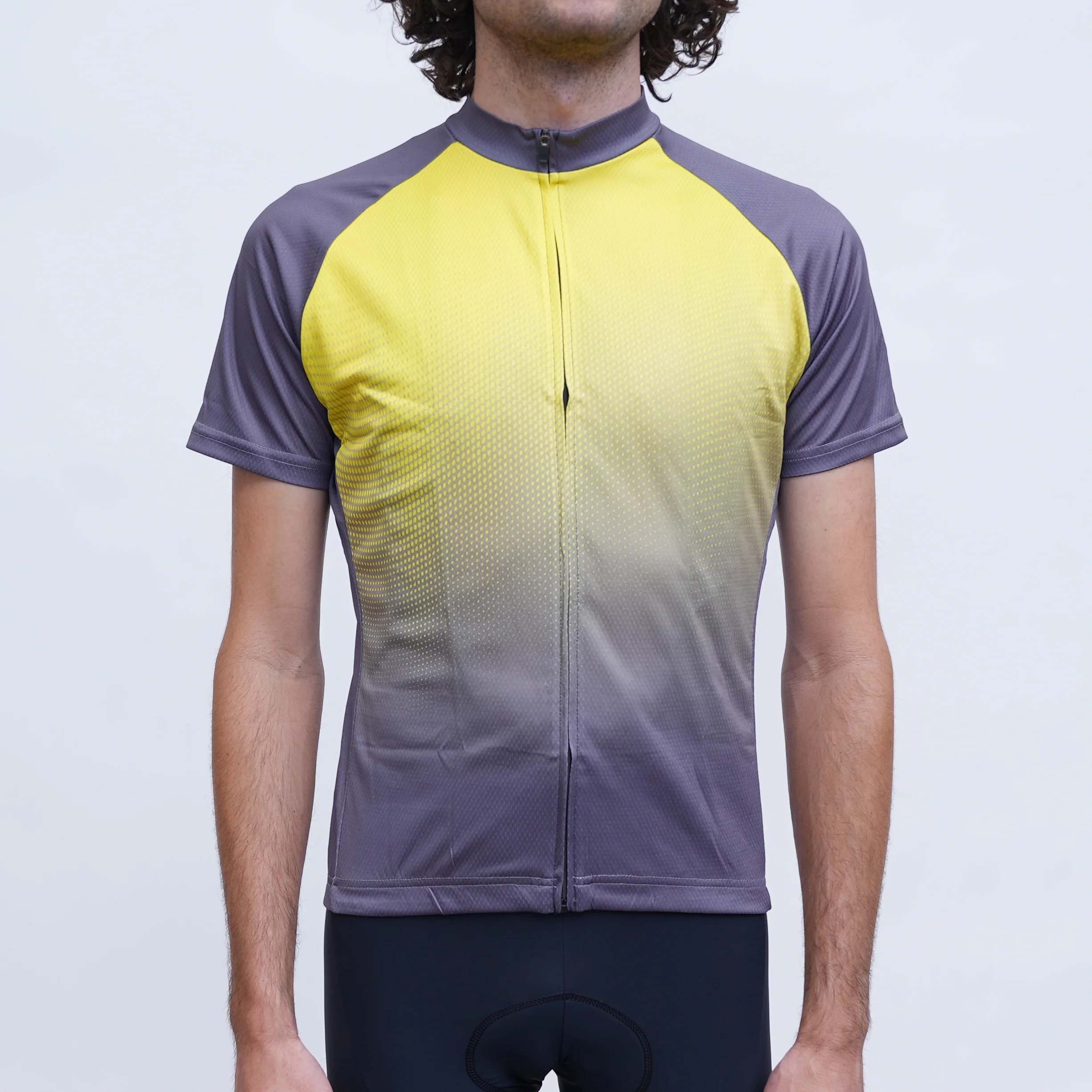 This jersey fits slightly looser than our Ride Fit jersey. We would categorize it as club or relaxed fit.