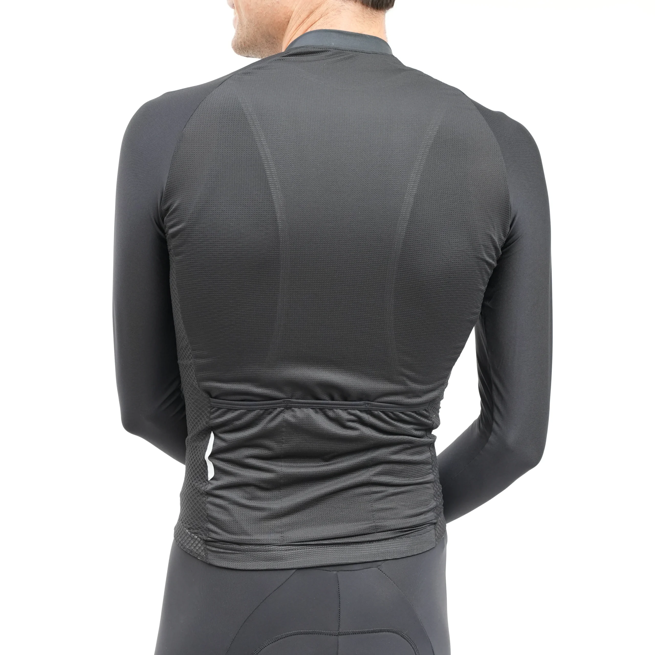 The Aero Long Sleeve Jersey is designed to keep you comfortable in mild weather and protect you from the sun on hot days. Its body and side panels are borrowed from our lightweight Summer jersey, and its aero sleeves provide optimal coverage and breathability.